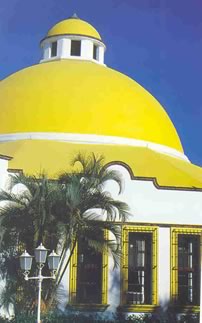 The circular open-air lobby is spectacular with its arched dome ceiling and